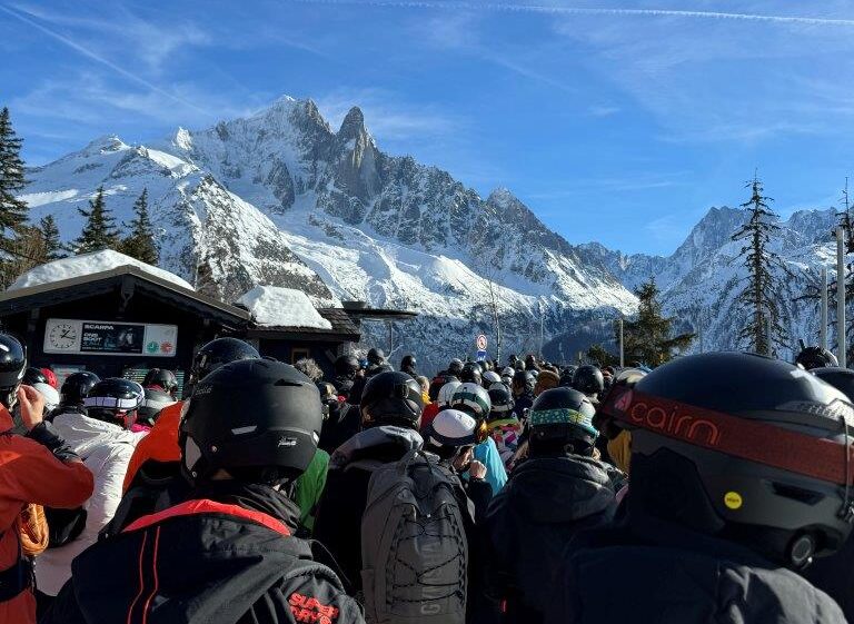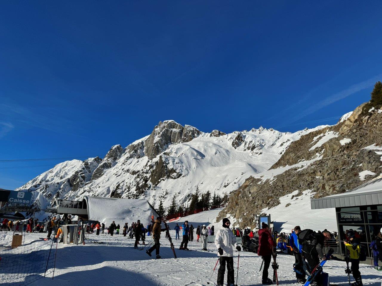 そしてようやくフレジェール側に到着したのですが、今度はゲレンデ内に出る連絡リフト EVETTES が激混みで20分待ち。