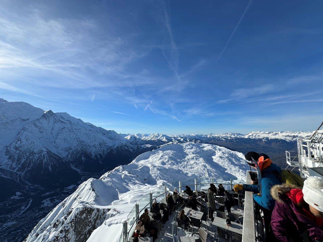 このように、アルプス山脈の最高峰であるモンブランをはじめ、山々の大パノラマビューを見ることができます。本当に圧巻の一言、日本では決して見られない規模感です。