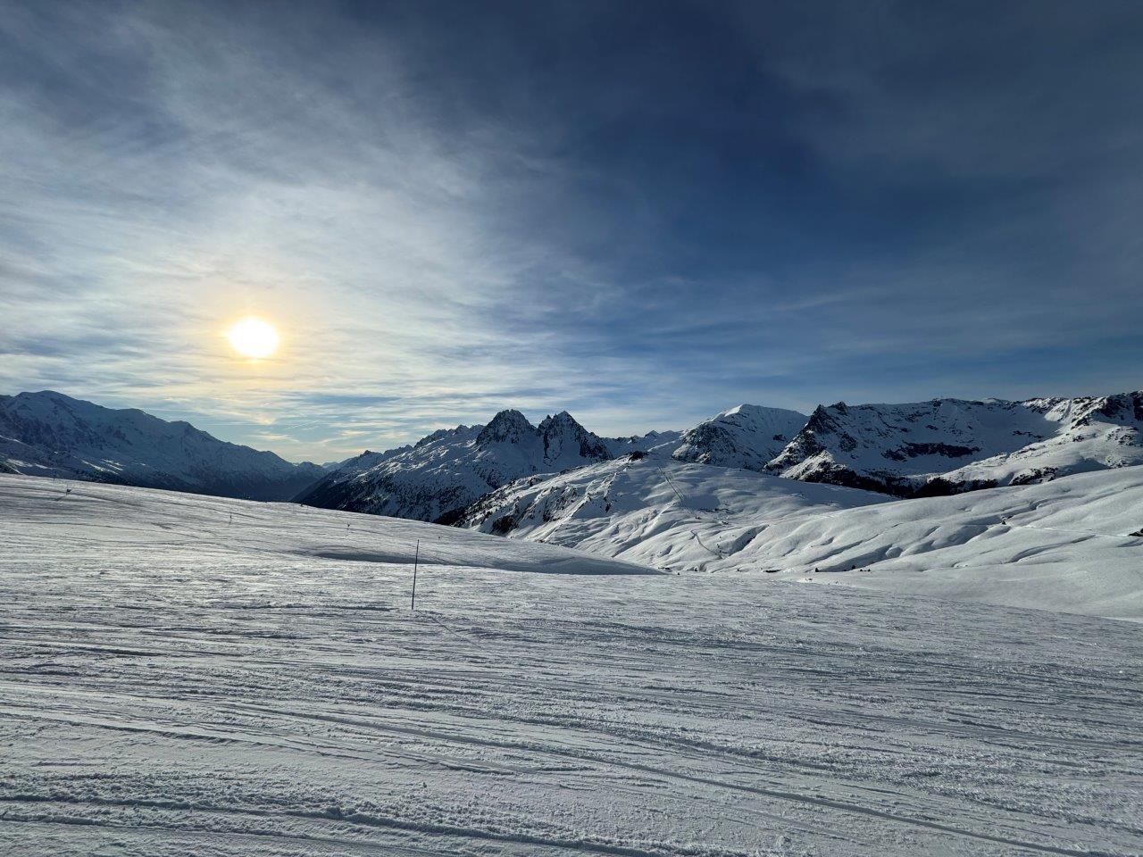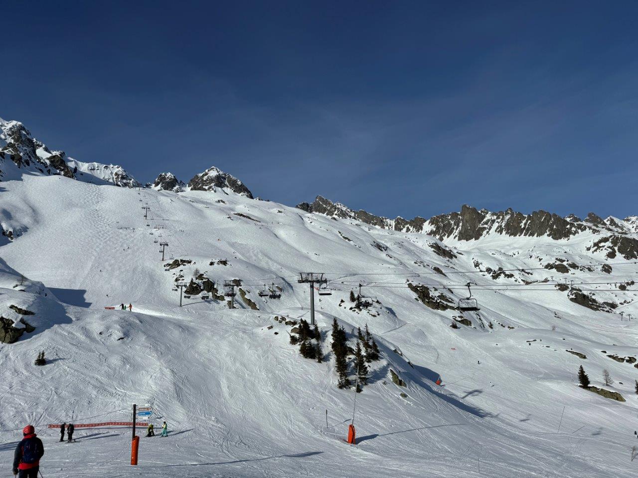 こちらがLes Autannesゾーンのゲレンデ。確かに広くて斜度が緩めなので、初心者のかたは滑りやすそうですね。ただ、コース自体は短かかったので、コースも長くて地形も面白いブレヴァンのほうが、私は滑っていて楽しいです。
