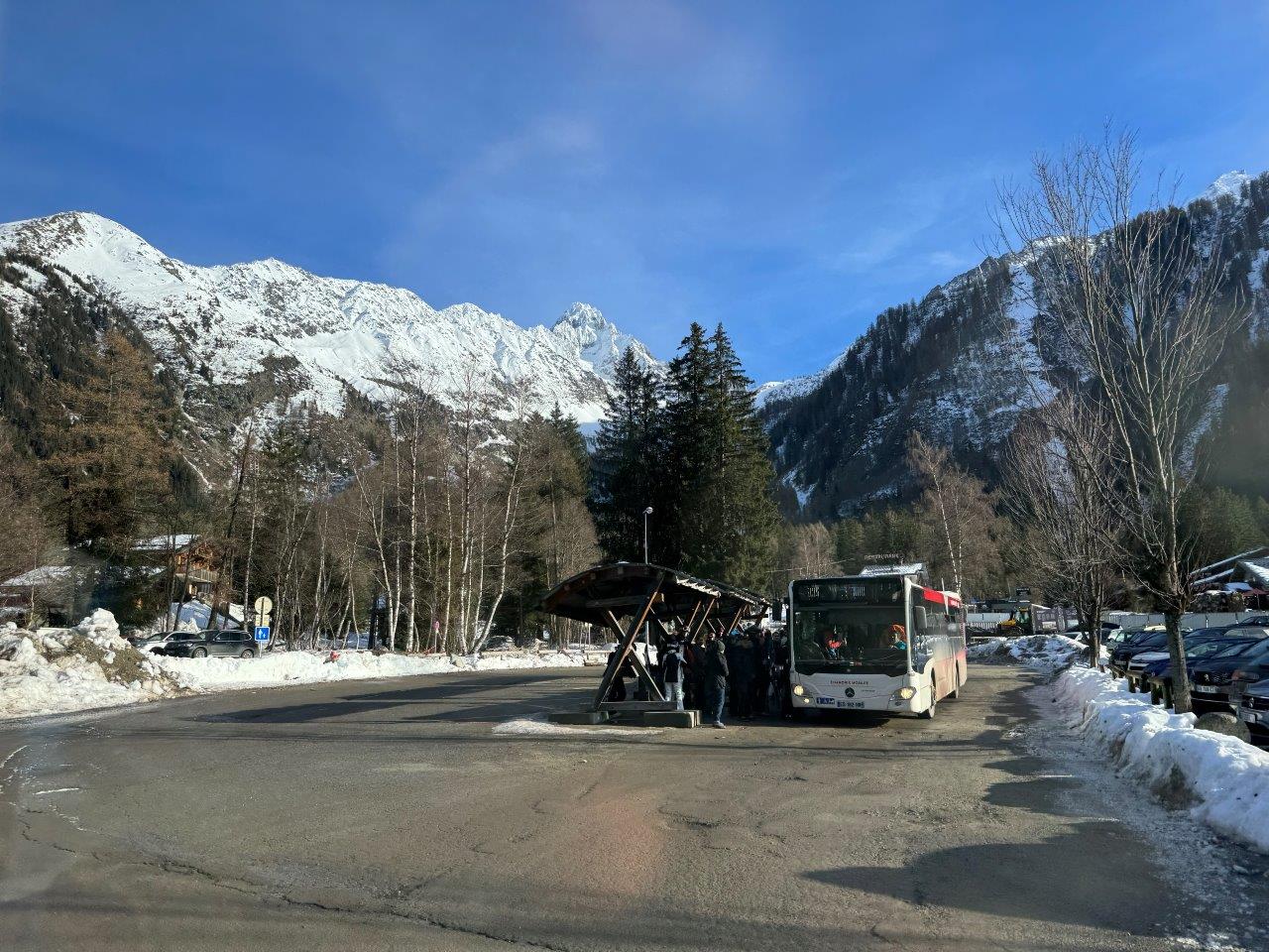 ただ、乗車するバスの路線次第では、満車状態で乗車不可となる場合がありますので注意が必要です。例えば、多くの人が利用するバス停 Chamonix SUD を経由して近場のゲレンデに向かうにバスは、Chamonix SUD で多くの人が乗車しますので、途中にあるバス停から乗るのは困難ということになります。もちろん、朝の時間帯のほうが、昼に比べてゲレンデに向かう人も多いでしょうから、そういった点も加味するべきかと思います。