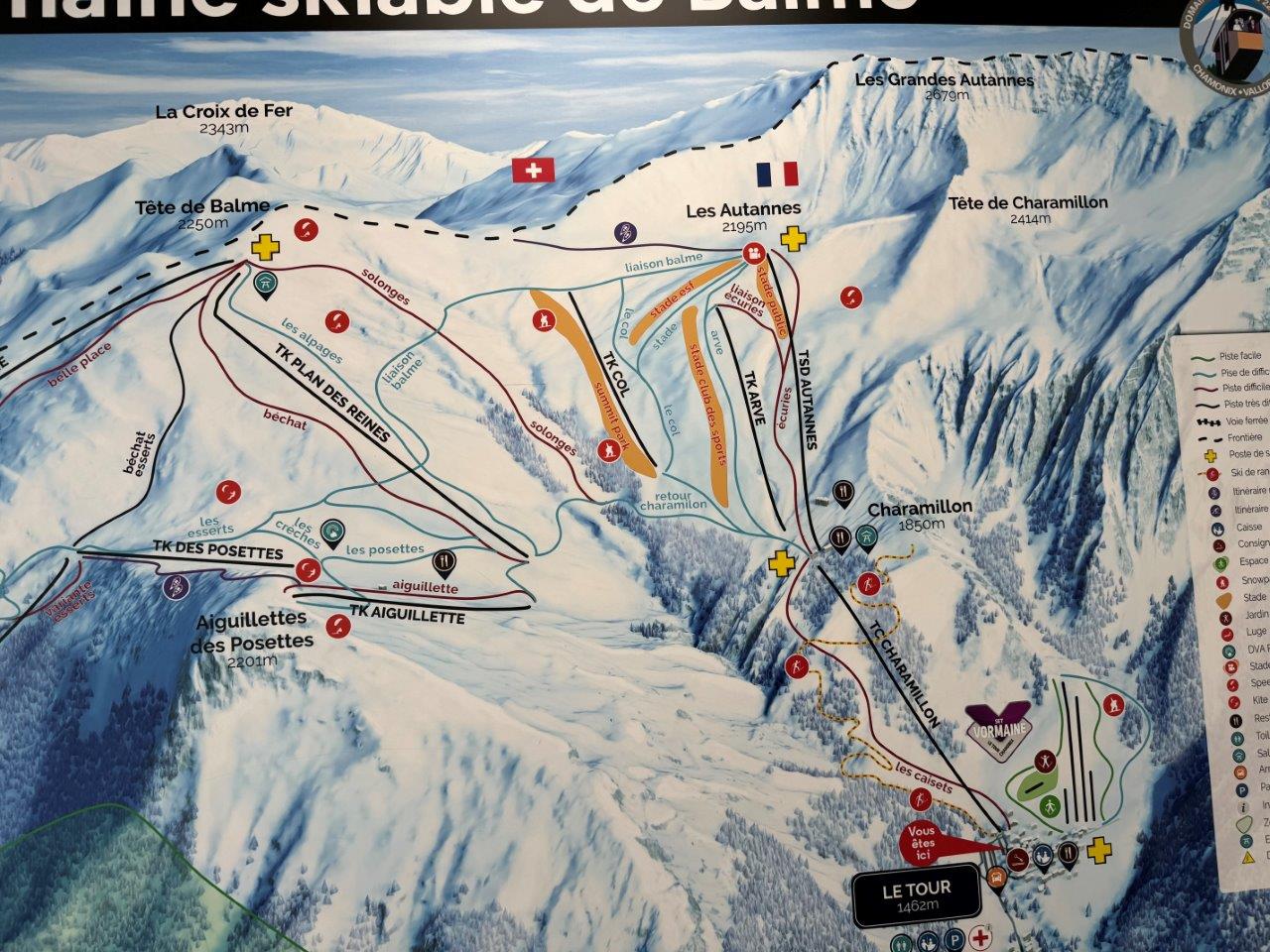 これを見て気付いたのですが、バルムも2つのエリアで構成されているようです。シャモニーバスでこられるのは LE TORU というバス停なので、おのずと右側のLes Autannesゾーンに行くことになります。
